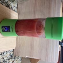 I absolutely love this little blender. It is so awesome. At first I wasn’t sure of what to expect because a lot of times when you order something going off of what the description says you are disappointed. Well honestly there is NO disappointment with this. It is great. I used fruit that I bought already packaged up for drinks m, I just cut some of the bigger pieces of fruit of and I added almond milk and it worked unbelievably great. I am going to use this quite often. It’s so easy to use, cleaning is very easy. Between making my drink and cleaning the base after use took maybe 10 minutes and none of the hassle or mess of using a regular size blender it’s awesome. I highly recommend this product.