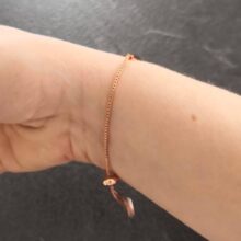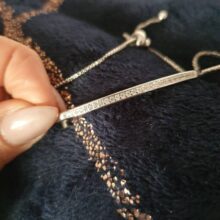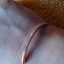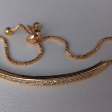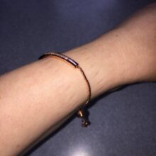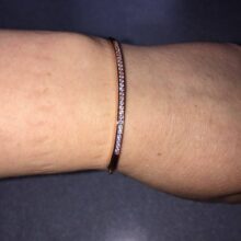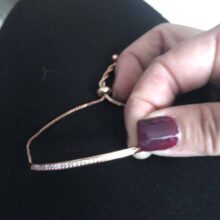 Ordered 01/13-received 02/05, sent on the same day. The bracelet was packed well, came without damage and creases. The color is beautiful, does not look cheap. From gold you can distinguish from what, from yellow of course yes, from pink Not immediately, the eye does not catch but still the color is not brighter than Rose Gold. .. Pebbles shine, everything is in place, what else is necessary)))) let's see how it behaves in the sock and when in contact with water. My wrist is 17 cm +/-, and the loose "tails" of the bracelet up to 2 cm remain. Thanks to the store for the good goods, and quality service)