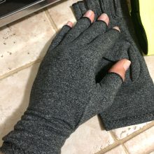 I was concerned with how small these looked when I took them out of the package (I ordered according to the sizing chart) but they fit perfectly! The fabric of these compression gloves is lovely and soft. The stitching all seems strong and all the seams lay flat so they won’t dig into your skin and cause irritation. The gloves were a bit hard to get on but that is probably because they’re brand new. My hand is just a smidgen over 3 inches wide at the knuckles so I ordered small and it was exactly the right size. The moment the glove was on, I felt almost instant relief from the pain in my knuckles and fingers. The gloves are designed with a left and right hand, rather than a interchangeable shape, which means that they fit properly around the thumb. I really like how the length of the fingers on the gloves comes up so high, providing extra warmth and comfort for the middle knuckle and a bit of the top knuckle too. Keeping the finger tips exposed means that I can type and pick things up without worry. Because the fabric is mostly cotton, it breathes well and doesn’t leave you with clammy hands. When needed, hand wash in cold water and air dry so that the elasticity doesn’t go out of them, and they won’t shrink.