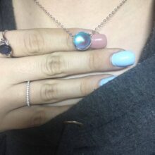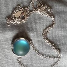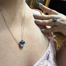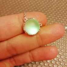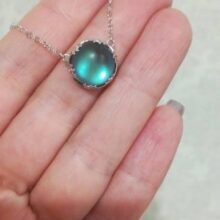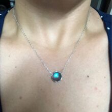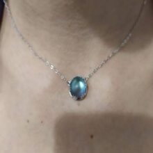 Very beautiful necklace, it is interesting to observe overflows inside the stone when the angle of view changes. I ordered four jewelry at the sale of 11.11, and the store put as a gift two more very beautiful pairs of pouches. I will definitely order from this seller more.