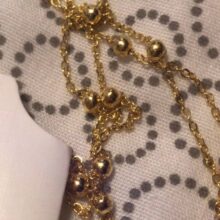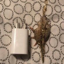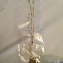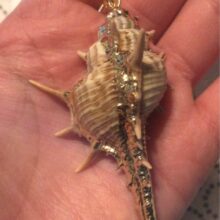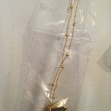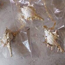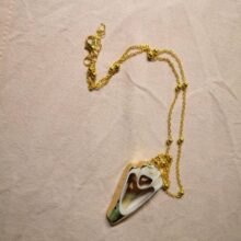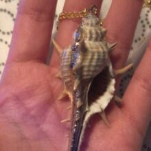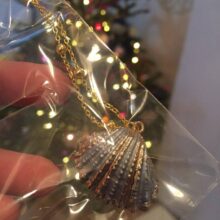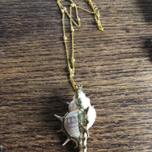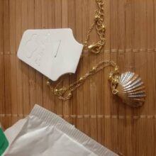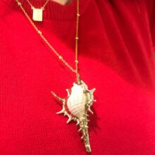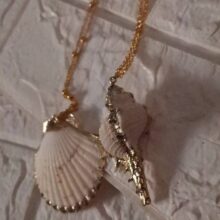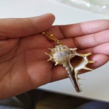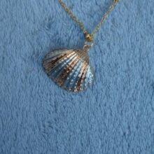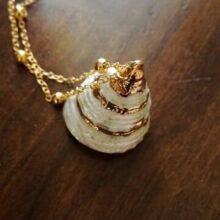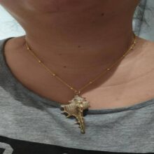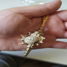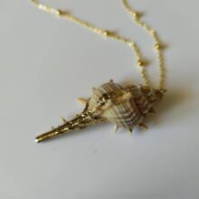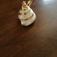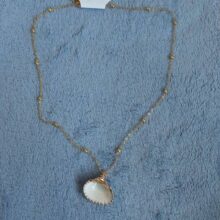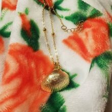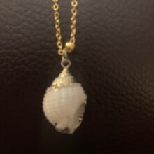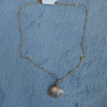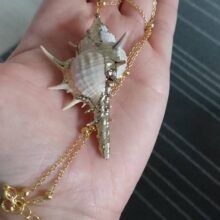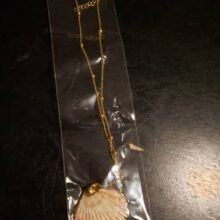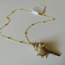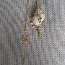 So beautiful! Ordered on: 11-11-2019 Received on:12-01-2019 Packaging: The package came in a secure bag that kept it perfectly intact, it was also wrapped in an additional plastic wrapper! Product: The material is different in the chain part and the actual shell. The chain is made up of a metal material and the small beads spread out are a plastic like material painted in gold, it is not possible to tell unless you feel it with your hands. The shell pendant appears to be an actual shell covered in a material to make it shiny and protect it, it is also painted with stripes of gold that seem to be sealed in. There is no flaking or scratching I’m very impressed, the spikes on the shell are a bit pointy so be careful to not press into your chest when wearing! Overall: I would definitely recommend the item you get exactly what is pictured, as long as you treat it with care it will last a while. Thank you store!! :)