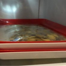 Put frozen fish in and sealed it. Next day no fishy smell in my fridge. Fish was fresh looking not and ugly smell left behind. I'd buy it again. But the tray could be bigger anyway