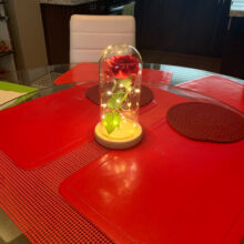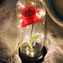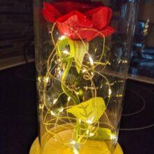 Silk red rose is surrounded by led lights which will create such a cozy and special atmosphere when turned on.