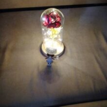 The glass dome is made out of high-quality, ultra-clear crystal glass which protects the rose perfectly. The base is made out of pinewood, together with the dome cover bringing in an aesthetic look.
