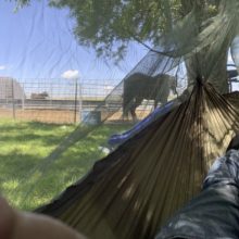 I love the netting that zips around you to keep the bugs away. The hammock is comfortable and sturdy.
