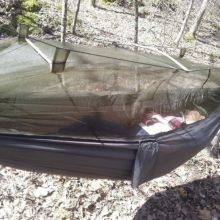 I do a lot of "bivouac" camping (courtesy of the Army) and dont usually have space to pack any sort of tentage other than a poncho so I thought I would give this a try seeing as how I've had a lot of back problems over the past few years. I tried it out a couple weeks back for the first time during a field exercise in a heavily wooded area surrounded by water. The mosquitos were out with a vengance so it was nice to be able to jump in this at night and not have to worry about them. Setup was easy and thanks to the other reviews I knew not to tie the net off too high so it didn't tear. I ended up connecting the net strings to bungee cords to give them a little flex. I would definitely recommend this hammock to anyone who does a lot of backpacking. It tears down and packs away into the connected bag very easily (unlike any tent I have ever owned).