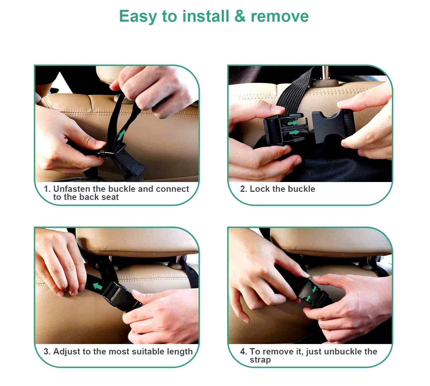 Strong Stability: 3 rear Hook & Loop fasteners make this car organizer stuck to the backseat, so as to keep it from swinging or flying around while driving.