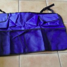 Fits nicely on back of seat giving extra space for storage. Velcro all around the edge ensures it doesn’t bang