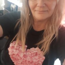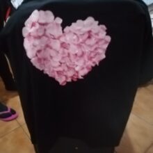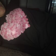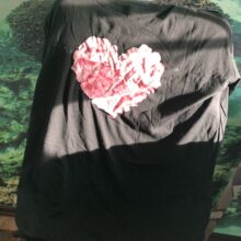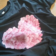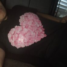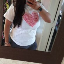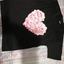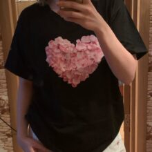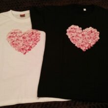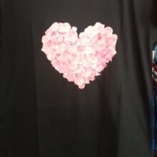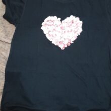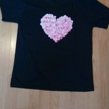 A cotton t-shirt, featuring a pink floral heart design, crew neck, and short sleeve!
