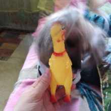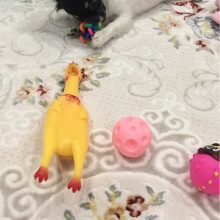 Great chickens. The dog is really getting used to them, barking on them. It's time. Recommend the item, the price is super and fast delivery. Thank you