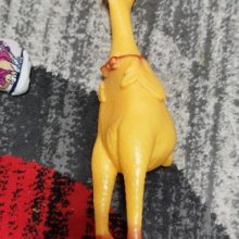 There isn't much to say. It's a yellow rubber chicken. It looks just like the picture and arrived as promised. Dog very much liked