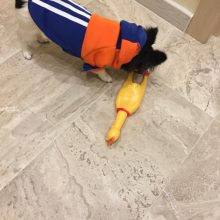 First, giving this to your dog what do you expect will happen? Dogs pop and trash tennis balls, so do you really think this rubber chicken is going to be any stronger than a tennis ball? LOL