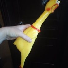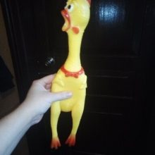 Fair enough product for a cheap rubber chicken. However, if you’re buying this chicken to use as an instrument to play songs like you may have seen on YouTube… Definitely not good for that. The pitch is not variable No matter if you squeeze it hard or soft, faster slow. One pitch only. You’re probably not purchasing this chicken to make music like I was, so I’m sure you’ll be just fine!! If you are intrigued and a little adventurous, get on YouTube and type in “Bohemian Rhapsody, rubber chicken“ in the search bar. 🤣