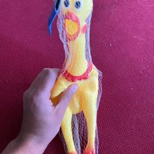 Made of 100% non-toxic rubber, our chicken measures 11 in (28cm) in length, our loud, fussy toy can go with you from parties to concerts and so much more for a screamin’-good time.