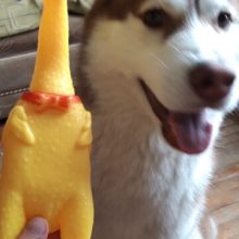 This is my dogs favorite toy! He has had one for years- it is his present to us when we get home or he has does something he is good, etc.... his last one broke after five years of hard use.... I needed one quickly so I ordered a replacement "chicken". It came quickly and was exactly as was expected... it even looks better made than the original one I had... thick rubber chicken with squeaker.... such a happy dog again!!! I was very happy with the customer service, was they send a thank you note too!