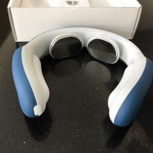 I am suffering from neck pain badly. I feel much better every time after I use the massager for 15 minutes. It’s wireless and has a separate remote. It’s very moveable and portable. The two connectors are full of elasticity. They are able to move down and extend out a little bit, so it fits my neck perfectly. It’s really really comfortable and soft. It can warm up right around my neck area. The warming sensation is really nice. It delivers pretty decent pulsations. The battery life is really amazing. I recharge it about every 3 weeks. It is doing really great. It would be better if the remote has a screen and can show the current level and mode.