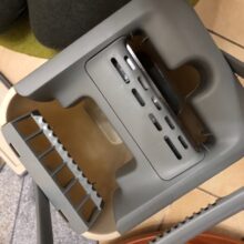 Very satisfied with the purchase! The bucket hold the mop so tightly and it stand upright and never fell. This Bucket design make my cleaning work more easier and faster .I used to sweep the floor first and used regular mop to clean one more time.after I got the mop ,I only mop one time because this mop grab well dust and solid dirt.see pics!I like that I don’t have to fill landfills after I do my routine cleaning. I love this mop.recommended !!!