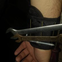 Wonderful wristband. The quality is excellent, well holds metal scissors, knives, all sorts of screwdrivers. Now you do not have to keep anything in your teeth.