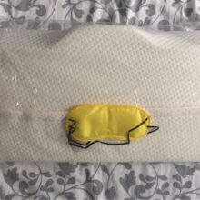 Smaller than the image might give the impression, but still a good size. No smell, soft texture. Bonus: came with a sleeping mask.