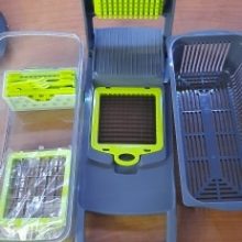 I am amazed at how quickly this veggie chopper has become part of my food preparation. I use it on a regular basis to chop carrots, radishes, cucumbers, zucchini, potatoes, cooked beets, and turn one or a combination of them into ready-to-eat or ready-to-cook form. It's pretty sturdy, too. The blades are quite sharp, necessarily so, so take caution when handling them. On my unit the tiny two-part plastic slider that locks the blades in place came apart and I need to figure out how to reinsert it. But the unit works quite well without this piece. Much recommended.