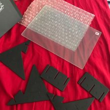 I bought this to help me transfer designs to rock and tile that can’t be transfer with other means. As you can see from the pictures, it works very well. I had to remove my phone from its case to get that to fit, but as long as kids or cats aren’t around, that’ll be absolutely fine. Overall I’m happy with product! It comes in 6 pieces, easy to assemble and disassemble for easy travel or storage. Will definitely recommend to friends and family!