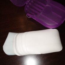 Bought these for our "go bags" - hands must be DRY to get a sheet out of the case, otherwise they'll all mush together.