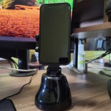 Pretty handy 360 holder, it follows you when you move around, nice for unboxing videos or tutorials. Feels a bit plasticky but apart of that is actually pretty solid, holds my iPhone pro max and also android phone without any issues. overall pretty satisfied!
