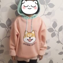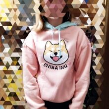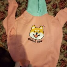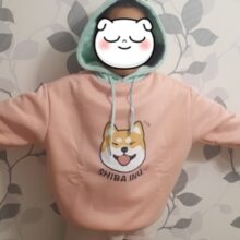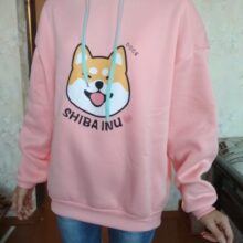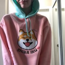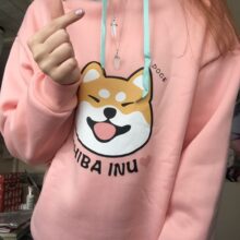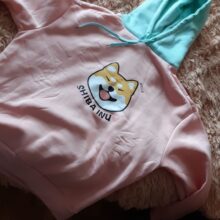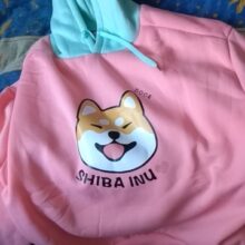 It has a pet dog design with “Shiba Inu” print in front of the hoodie.