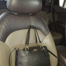 not as convenient as expected to be for my purposes. Very nice to hang things but not really all that convenient for me. I need to hang my purse on the back of my drivers seat and these hooks hang so low, it’s difficult to put the purse behind you on the hook and nearly impossible to retrieve it, for example, to grab your wallet if you go through a drive through or something like that. I do like them and they work great for other bags. I also don’t bother to hang my purse in front of the passenger seat because it hangs so low it’s nearly resting on the seat anyway. If your purse has two handles/straps, they get tangled up with both hooks and it’s just not all that convenient. I ended up hanging them behind the back seat and they are super helpful to hook grocery bags in the back. Still looking for a good purse hook that is wide enough to accommodate a purse with two straps and keeps the purse within arms reach.
