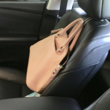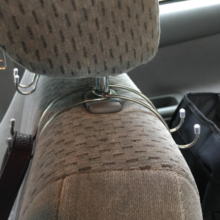 I love these car hooks. I'm always lugging around a heavy purse & craft supplies. If I have to slam on the brakes, they go flying off the front seat. Not anymore! They also don't get in the way of people sitting in the passenger seat. They hang on the headrest posts. You can turn them around or just leave as is for passengers.