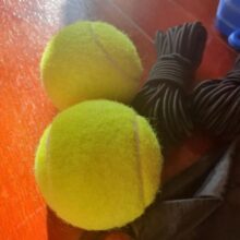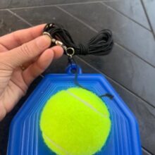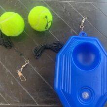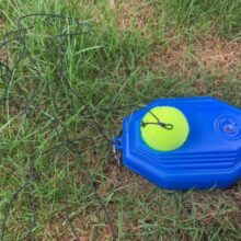 This met our need to get some solo practice when we can't get to the courts. I like how you can choose how much string to coil around the base depending on how much space you have and how fast you want the return coming back to you.