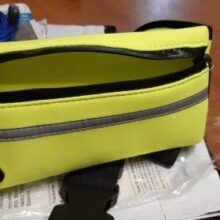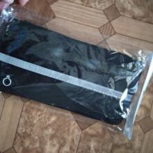 Mega fast delivery. Very surprised. Bag belt is super. Zipper pocket can accommodate phone, keys, money. Side for bottle elastic, with other side pocket for coins. There is a hole for headphones. Fasteners made of plastic, and rubber.